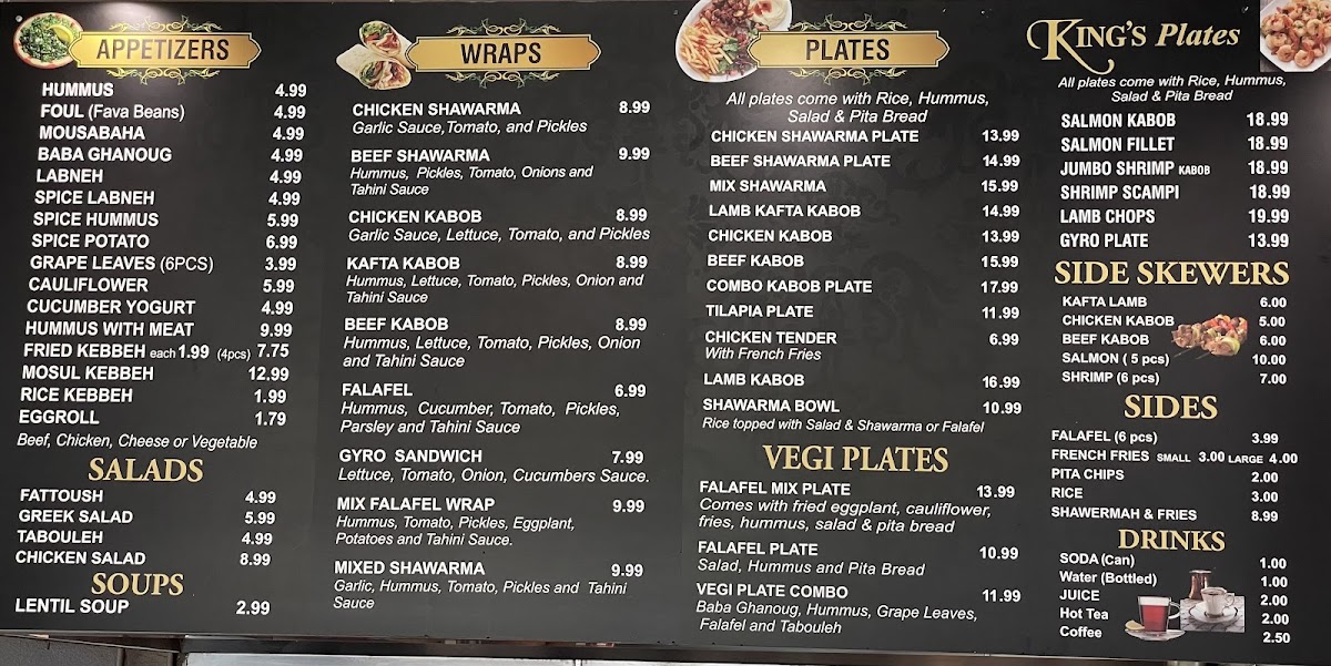 But don’t just take our word for it—King Falafel and Grill has garnered rave reviews from its patrons. Cynthia Lopez remarked, “I tried for the first time yesterday. It was absolutely delicious! The flavors burst in your mouth! So tasty! I’m hooked!” Fatima-Ezzahrae Mourad also echoed similar sentiments, praising, “Thank you so much for the best falafel ever, best service too, the woman there was so nice.” The atmosphere combined with top-notch service truly makes dining here a memorable experience.